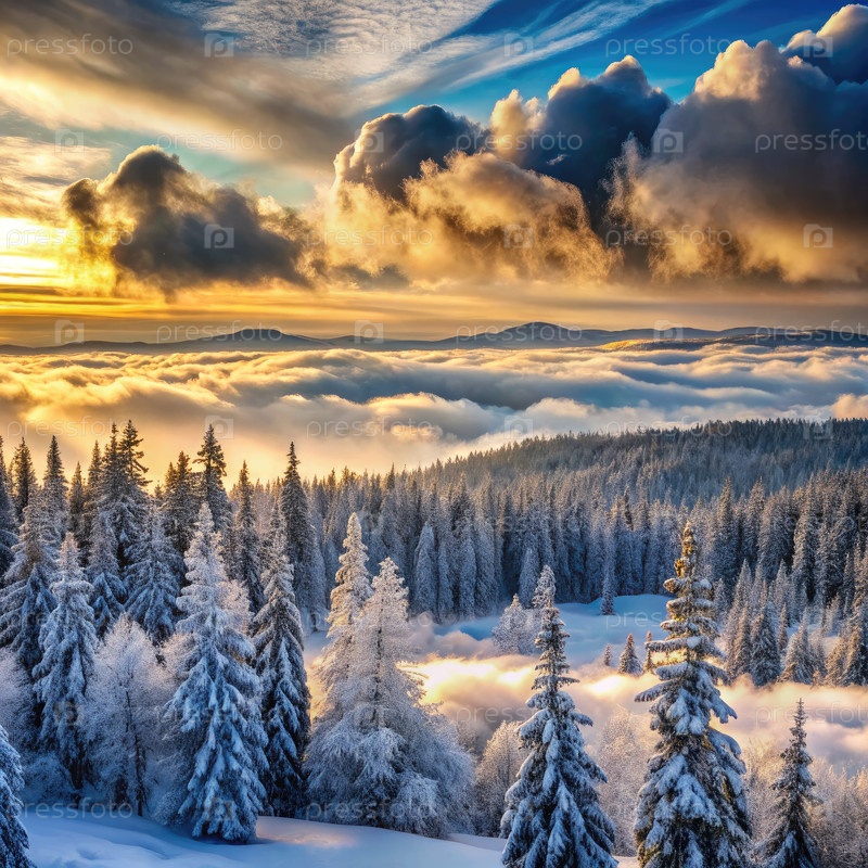 Потрясающий вид снежных облачных лесов зимой на стандартной шкале polarrz