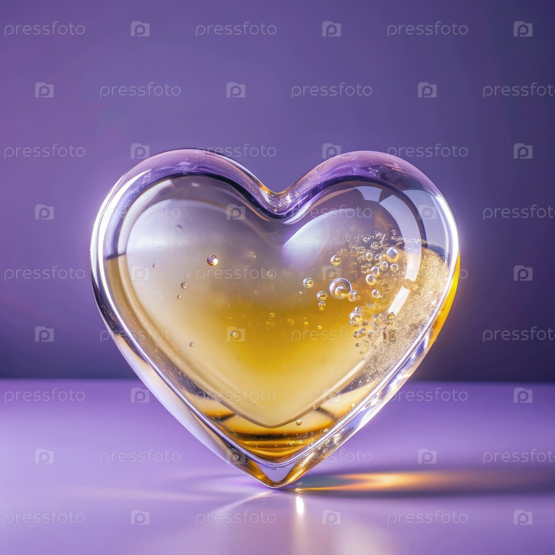 Скульптура жидкого сердца на гладном фиолетовом фоне с мягкими отражениями