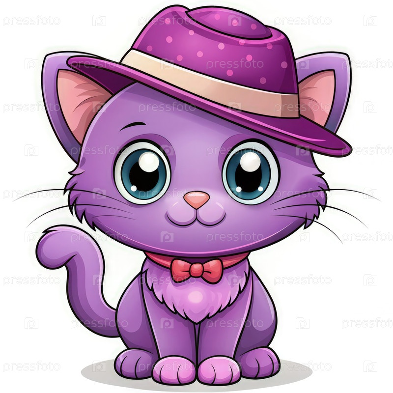 Мультфильм о коте, носящем фиолетовую шляпу и галстук, который весело сидит в игривой позе