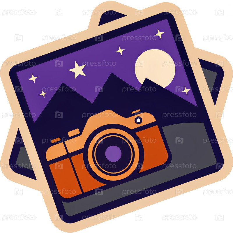 Цветная наклейка камеры, установленной против ночного неба с горами