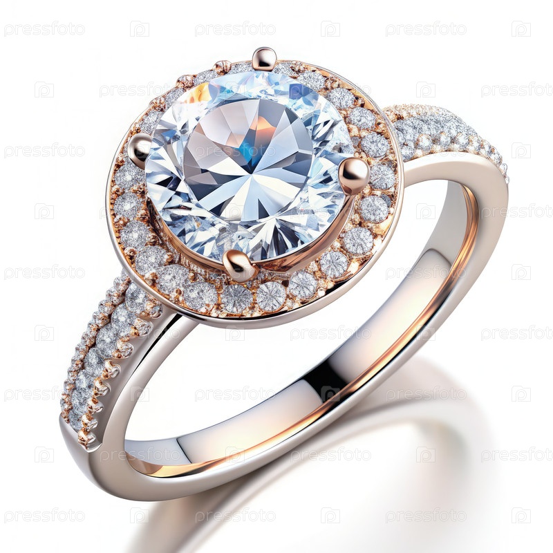 Элегантное роскошное кольцо с большим драгоценным камнем на белом фоне