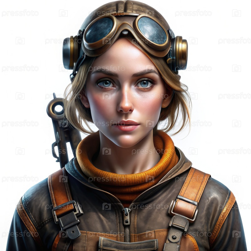Дистопический механический персонаж в футуристической мастерской во время бесконечного сумерек