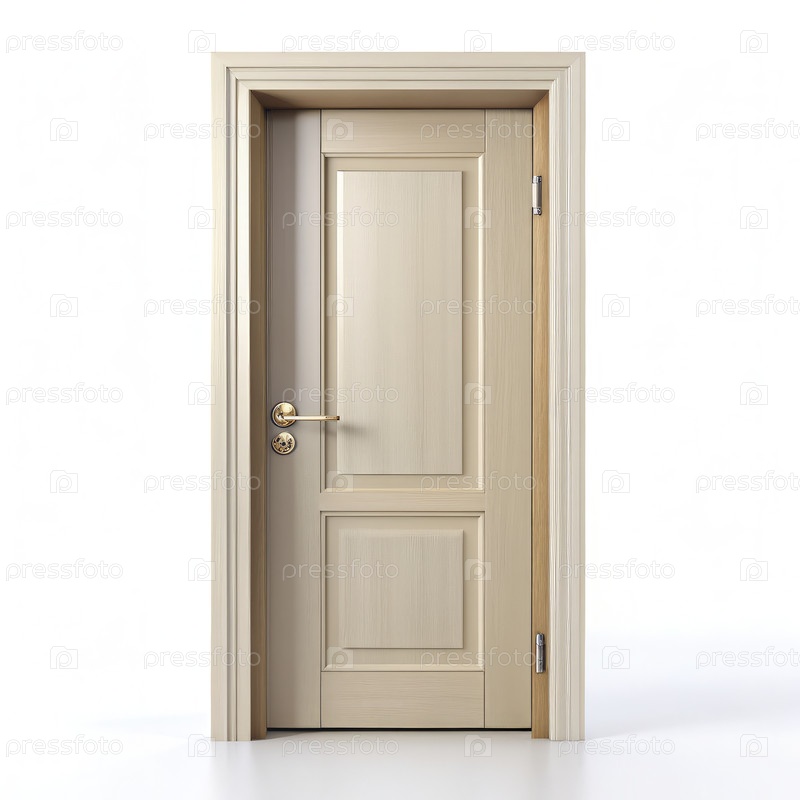 Элегантные деревянные двери самостоятельно на ярко-белом фоне с мягким освещением