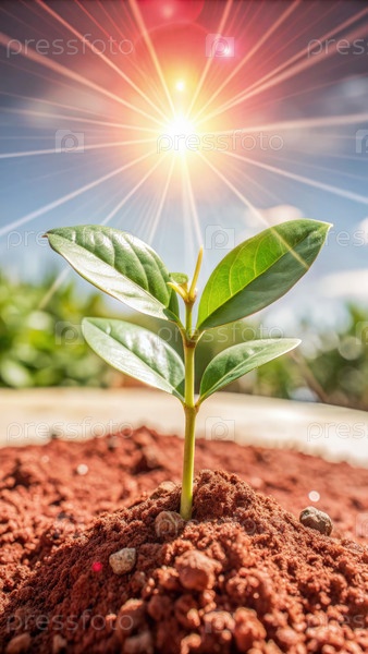 Молодое зеленое растение, растущее к солнечному свету в ярком саду днем