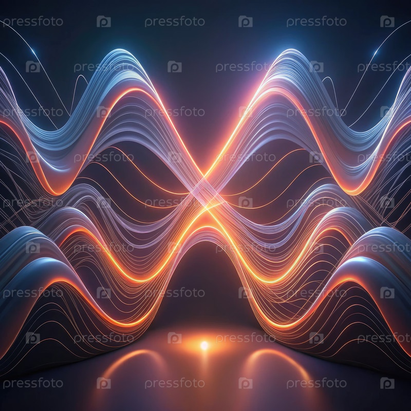 Абстрактный дизайн импульса неонов с изогнутыми линиями в темной обстановке