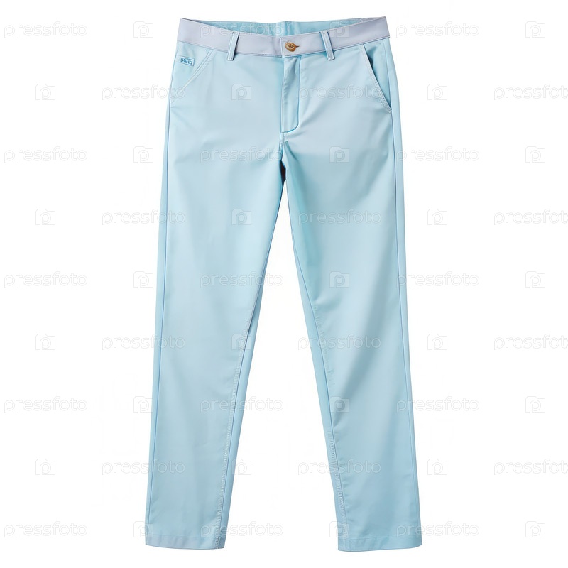 Светло-синие брюки, отображаемые на белом фоне для витрины одежды