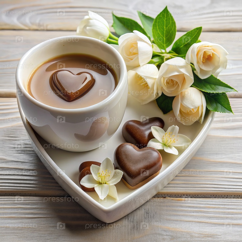 Глянцевая белая керамическая кофейная чашка в форме сердца с цветочными украшениями