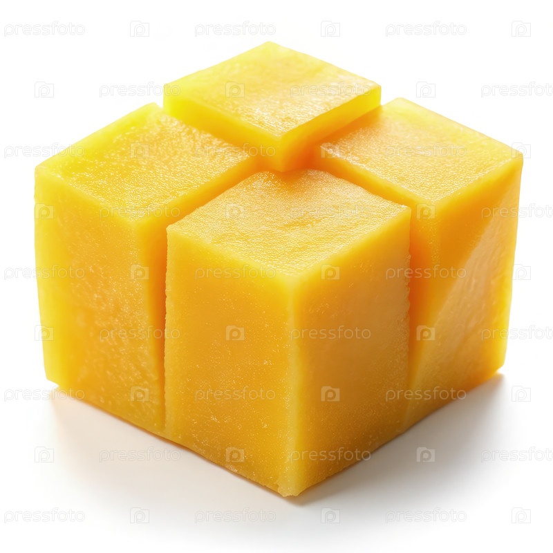 Свежий кубический кусок манго на белом фоне для кулинарного использования