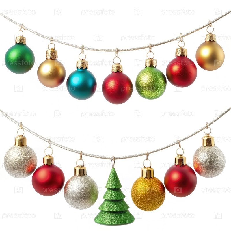 Красочные украшения рождественской елки висят на веревке в праздничном оформлении для сезона каникул
