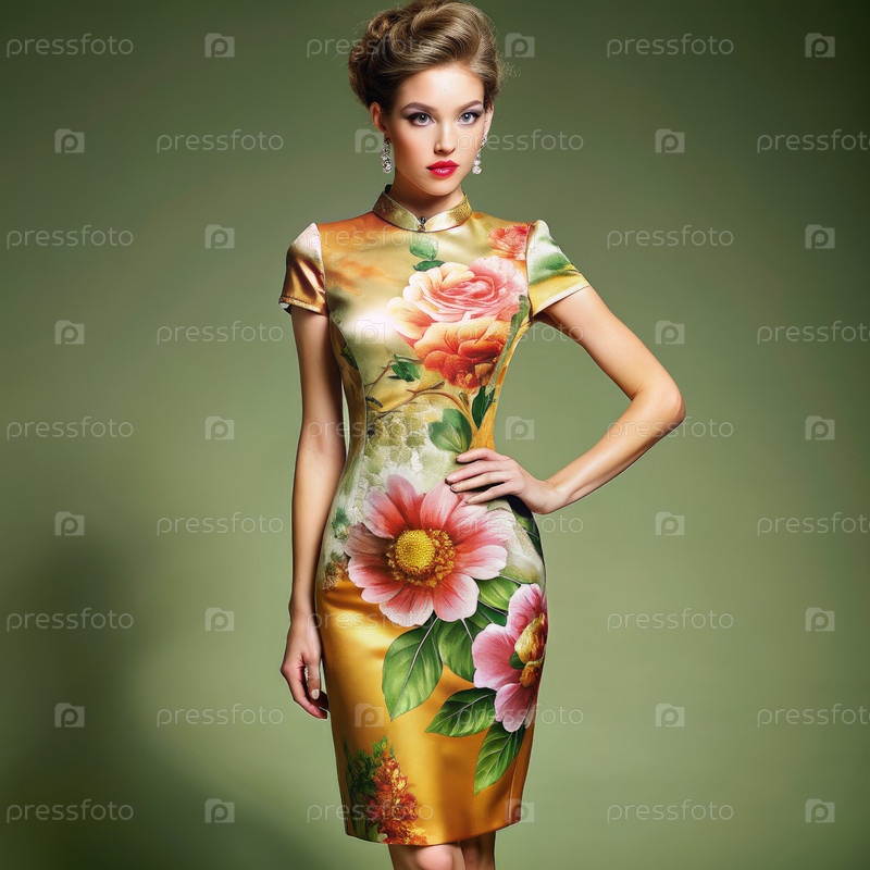 Элегантный сюрреализм: текущее платье для тела в шелке с цветочным дизайном в студии