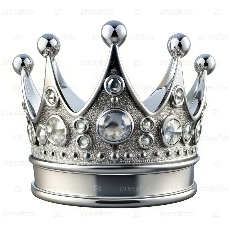 Красиво блестящая серебряная корона, украшенная сверкающими драгоценностями на простом фоне