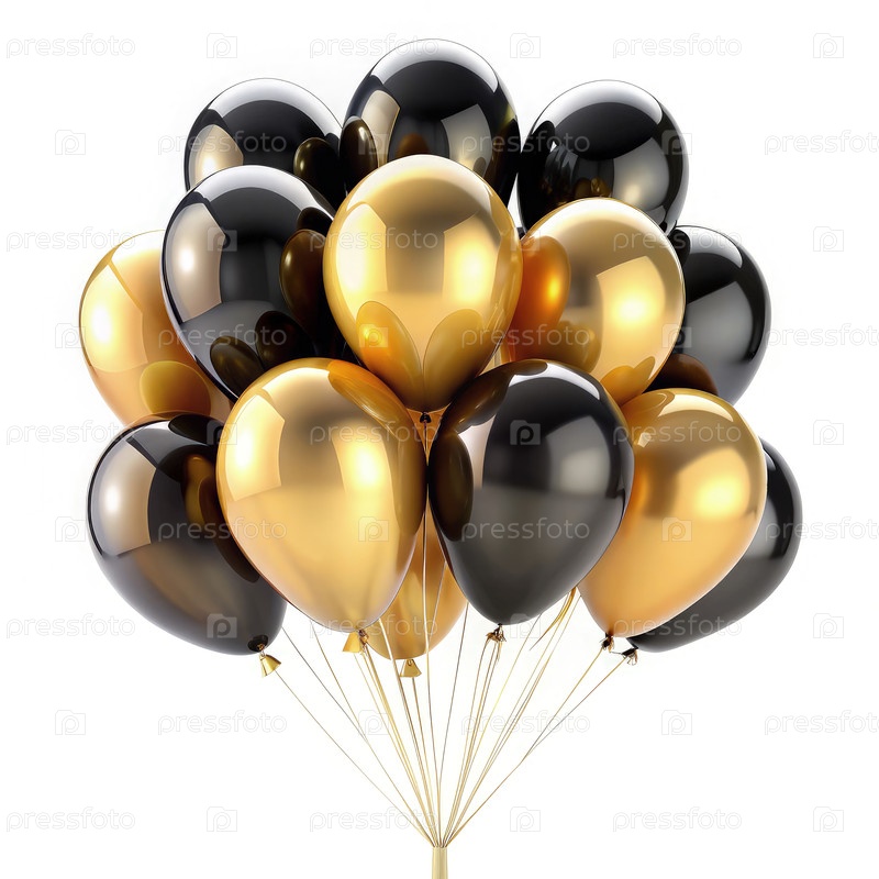 Золотые и черные шарики, расположенные на белом фоне для празднования