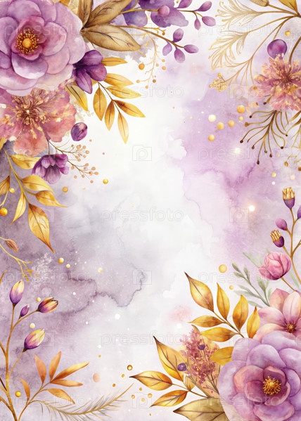 Ручная акварель, иллюстрирующая мягкую фиолетовую осеннюю цветочную аранжировку