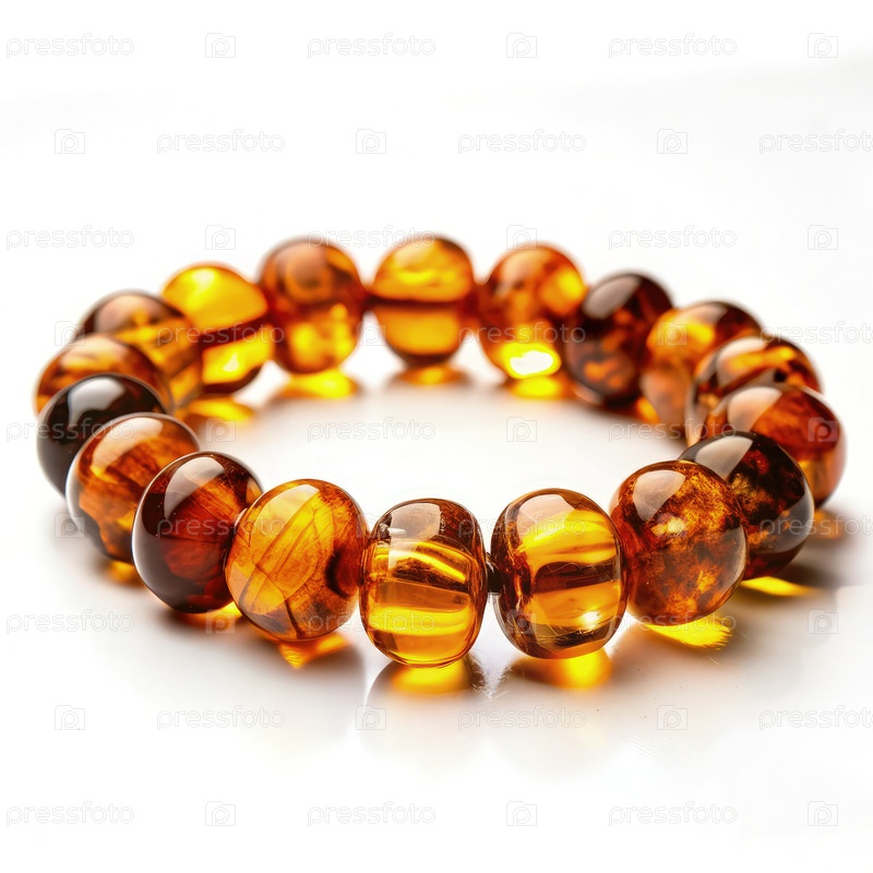 Красивый янтарный браслет с естественными оттенками, отображаемыми на светлом фоне, демонстрируя свой уникальный дизайн и мастерство