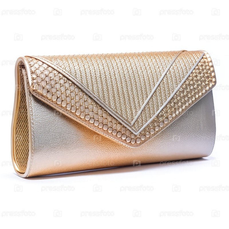 Элегантная сумка с золотыми и серебряными тонами на белом фоне, идеально подходит для вечерних мероприятий и официальных случаев