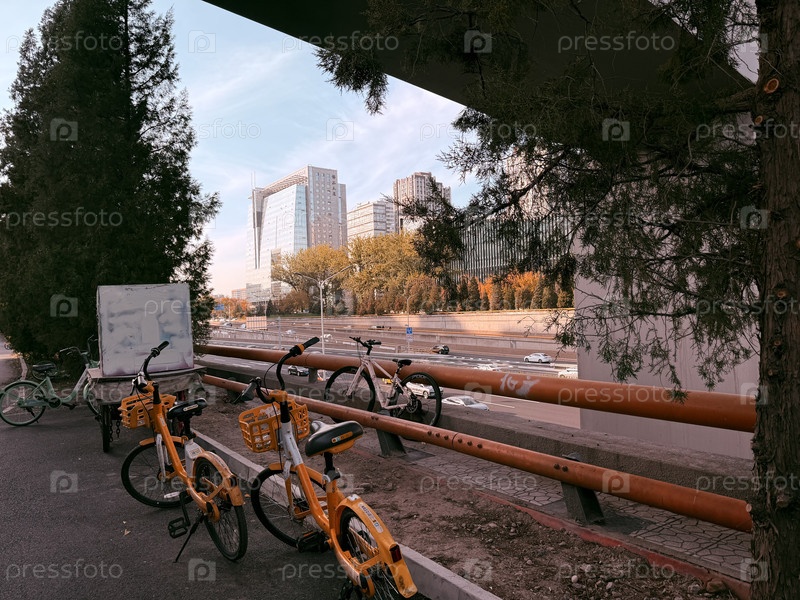 Улица Пекина днем с велосипедами (Китай)