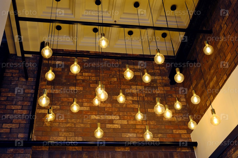Потолочное освещение в стиле ретро ламп закрепленных на длинных подвесах. Россия Воронежская обл Февраль 02 2026 г