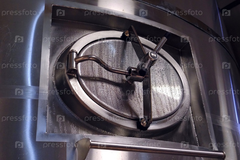 Цистерна с пивом в помещении пивоварни с запотевшей крышкой. Россия Воронеж Февраль 02 2026 г