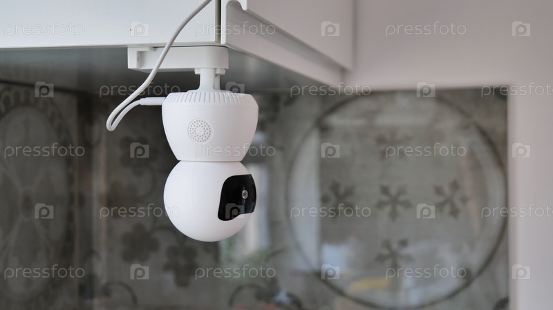 Белая смарт-камера безопасности, установленная в помещении