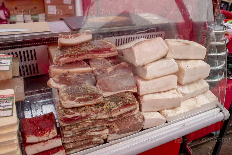 Продажа мяса и сала на рынке.Москва