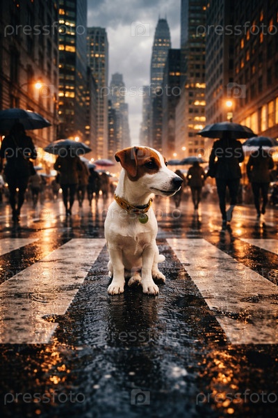 Маленький грустный щенок джек рассел терьера один на улице города в дождь