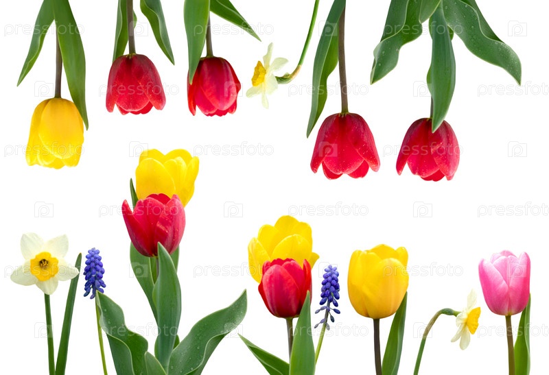 Живые весенние акценты: тюльпаны всех оттенков. без фона