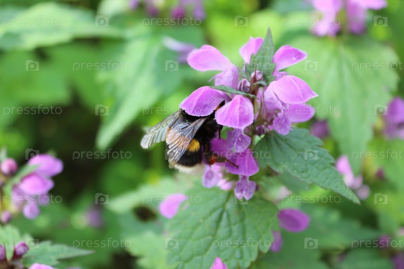 Шмель собирает нектар с глухой крапивы