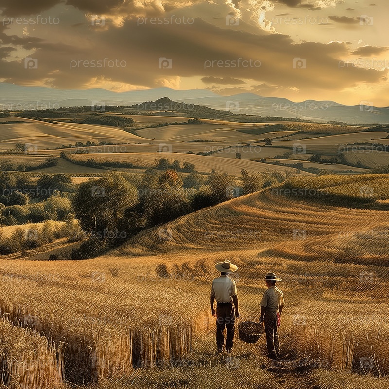 Дружба и совместная работа на полях во время сева и сбора урожая.Дружба между двумя мужчинами.Дружба двух детей