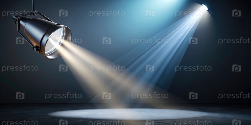 Прожекторные лучи освещают слабо освещенную сцену с двух сторон