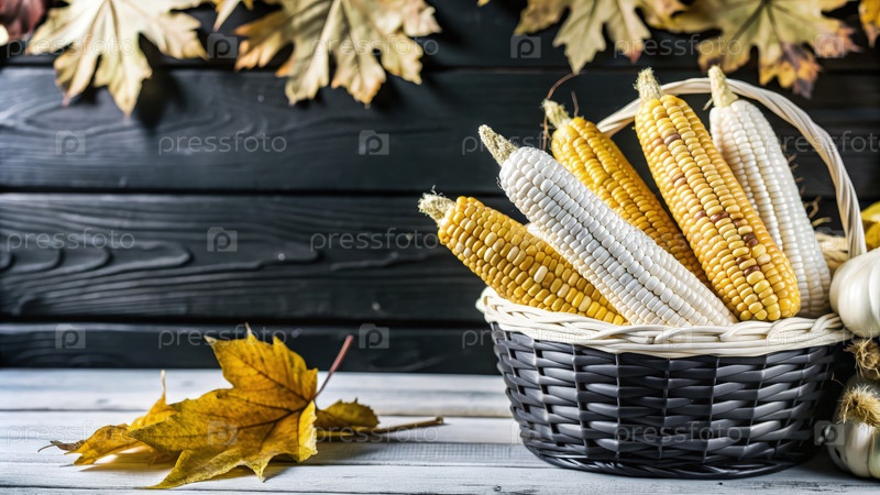 Праздничное празднование урожая кукурузы с сезонным декором и красочным зерновым дисплеем