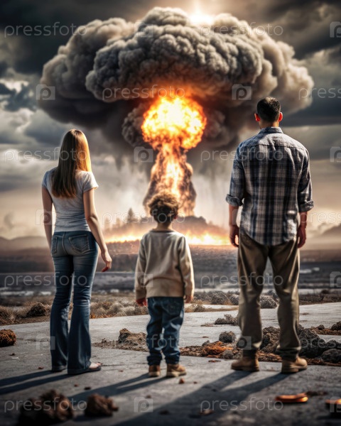 Семья из трех человек наблюдала за драматическим взрывом в обширной окружающей среде