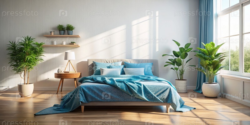 Яркая и безмятежная спальня, наполненная утренним светом и зеленью