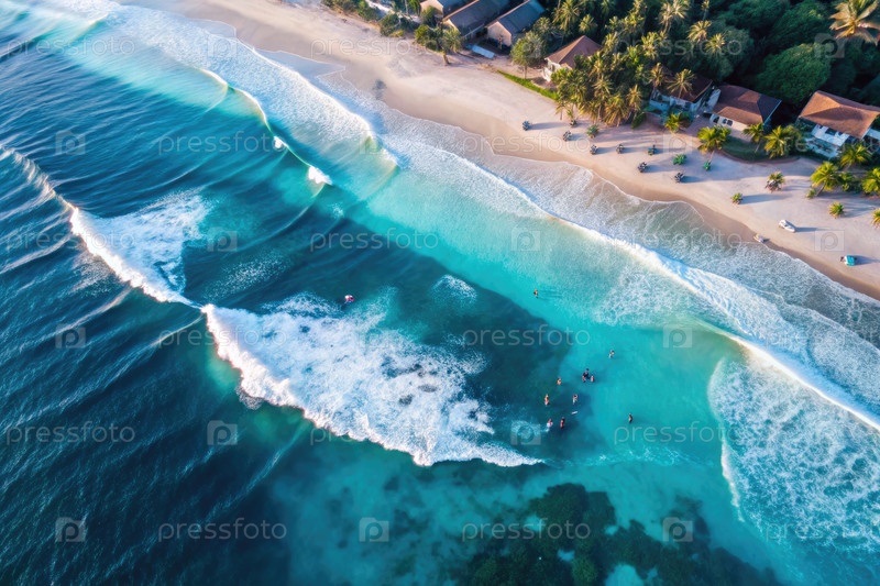 Расслабляющий взгляд с воздуха на спокойный пляж с мягкими волнами во время летних каникул
