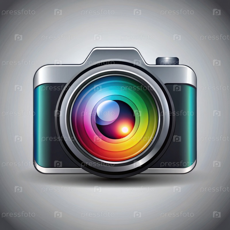 Красочный дизайн логотипа камеры с ярким объективом на нейтральном фоне