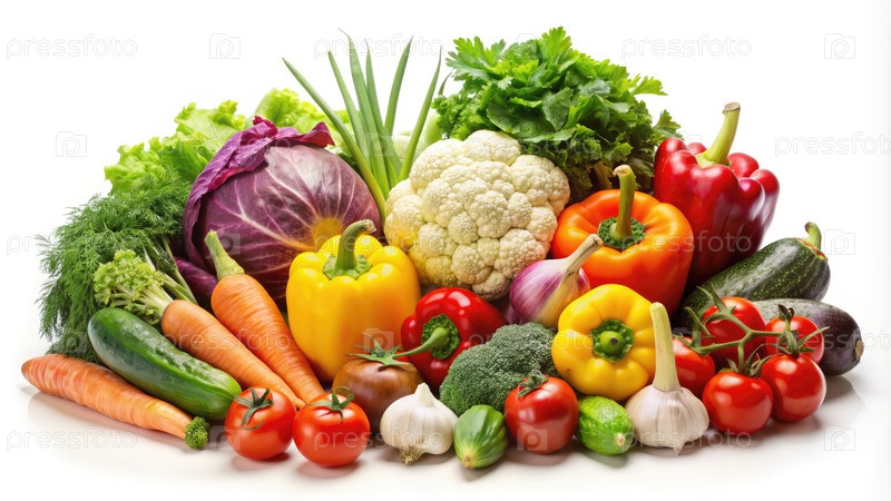 Свежая коллекция разнообразных овощей на белом фоне для здорового приготовления пищи