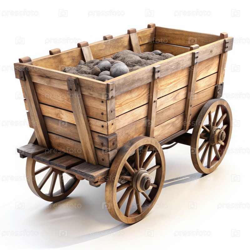 Аутентичная деревянная шахтная тележка с Дикого Запада, отдыхающая на белом фоне
