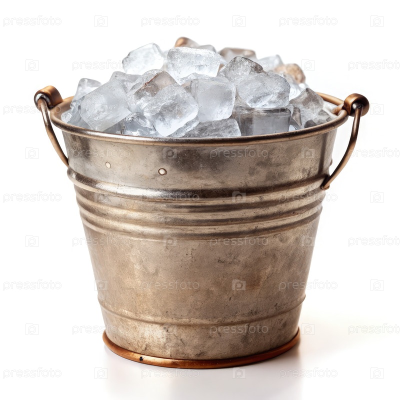 Грунги ведро, наполненное кубиками льда на белом фоне