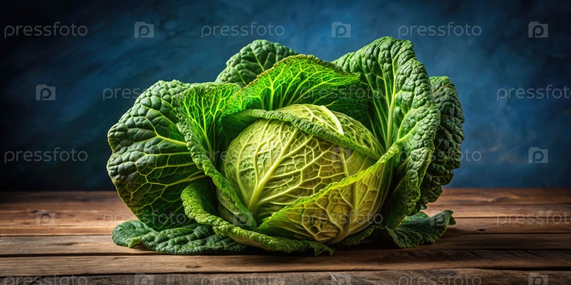 Свежая капуста, представленная в стандартном масштабе в деревянной обстановке