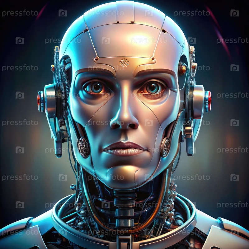 Реалистичное лицо робота, демонстрирующее передовые технологии в студии