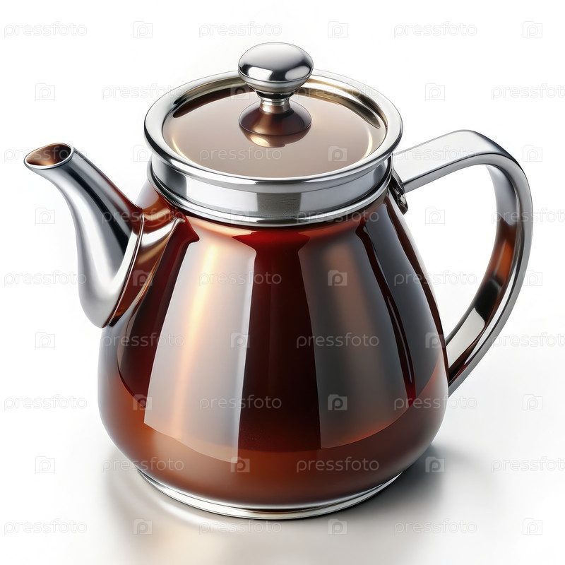 Стильный чайник, заполненный темной жидкостью на белом фоне, демонстрирующий элегантность
