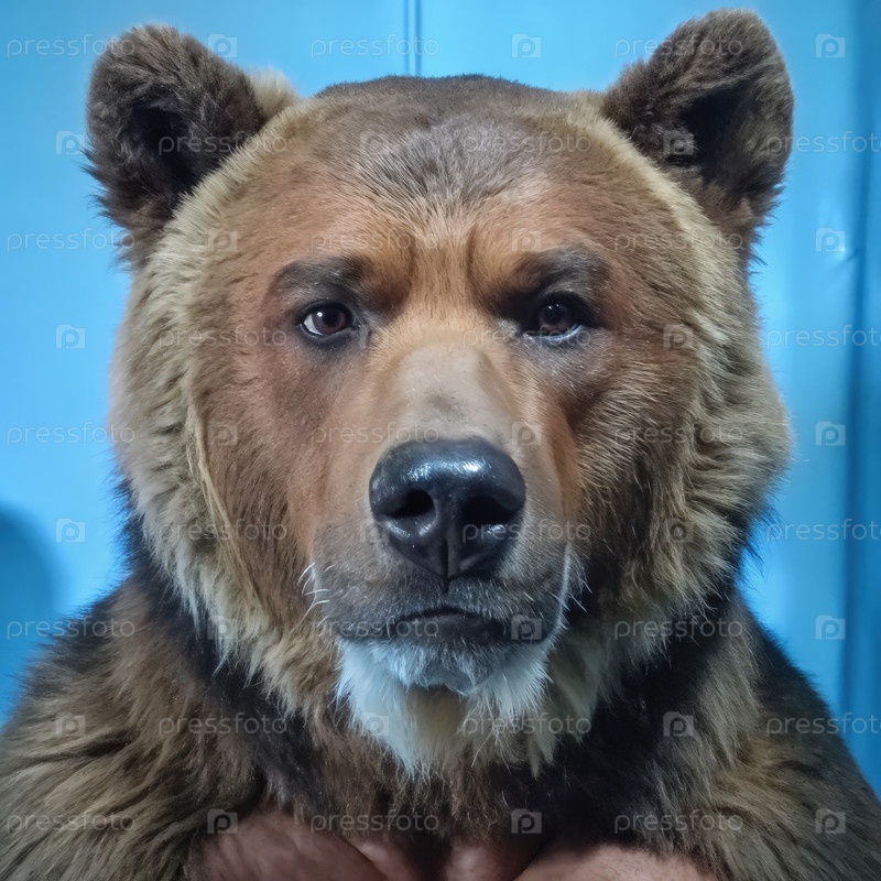Величественное медвежеподобное существо нежно позирует на синем фоне