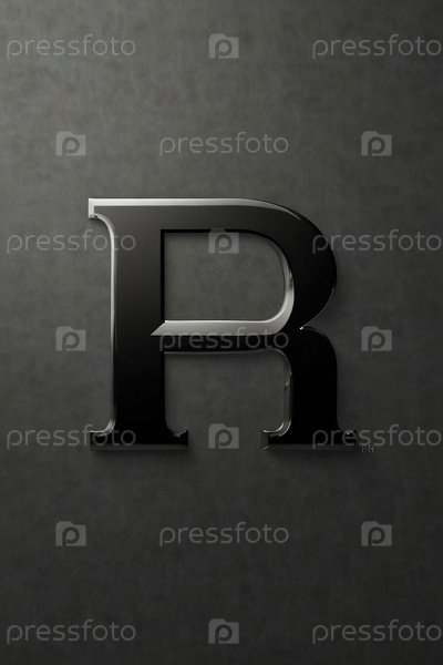 Стилизованный логотип буквы R заметно отображается на гладком темном фоне
