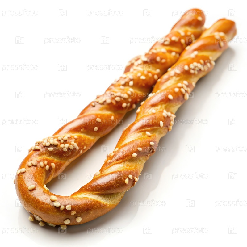 Соленая закрученная пряжа с семенами кунжута на белом фоне
