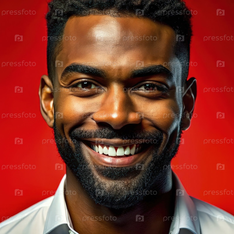 Портрет улыбающегося мужчины на ярко-красном фоне