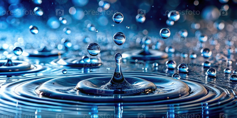 Капли воды создают волны на отражающей поверхности в спокойной среде