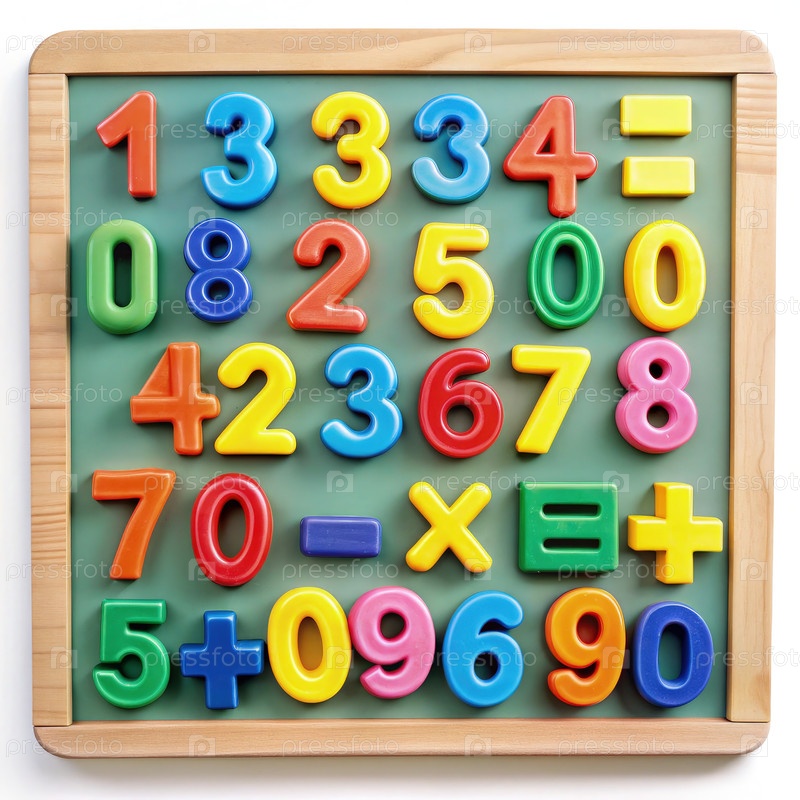 Красочные магнитные числа отображаются на школьной доске в образовательных целях