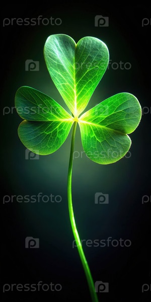 Светящийся клевер выделяется в темноте яркими зелеными оттенками ночью