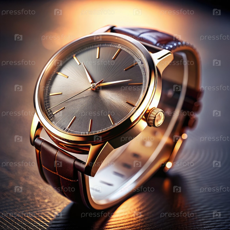 Витрина роскошных наручных часов на текстурированной поверхности, освещенной окружающим светом