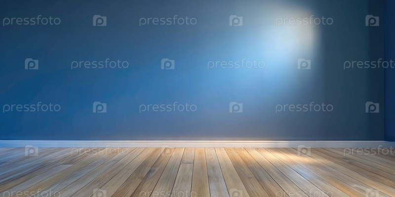 Размытая темно-синяя стена с деревянным полом в освещенном внутреннем пространстве