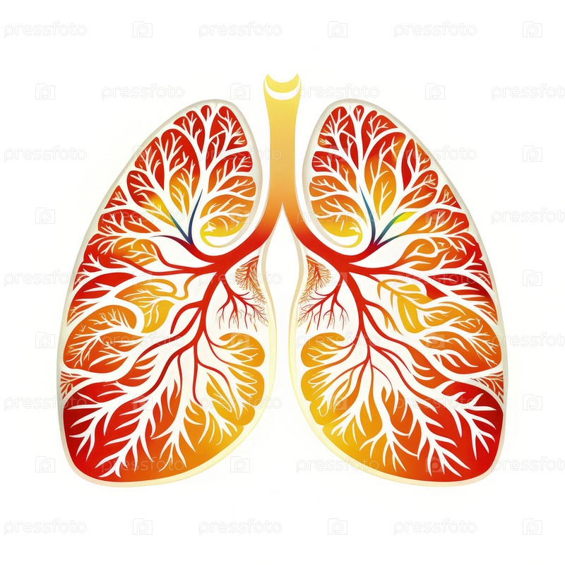 Красочная иллюстрация анатомии легких с подробным разветвлением и сосудистой структурой